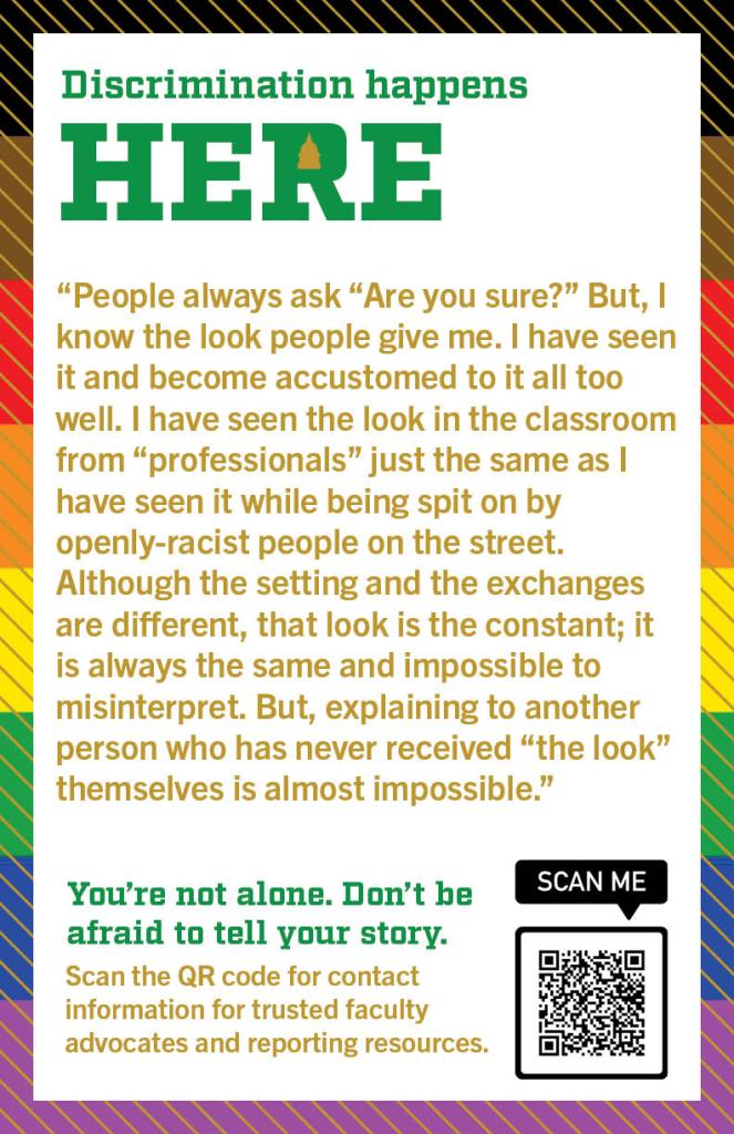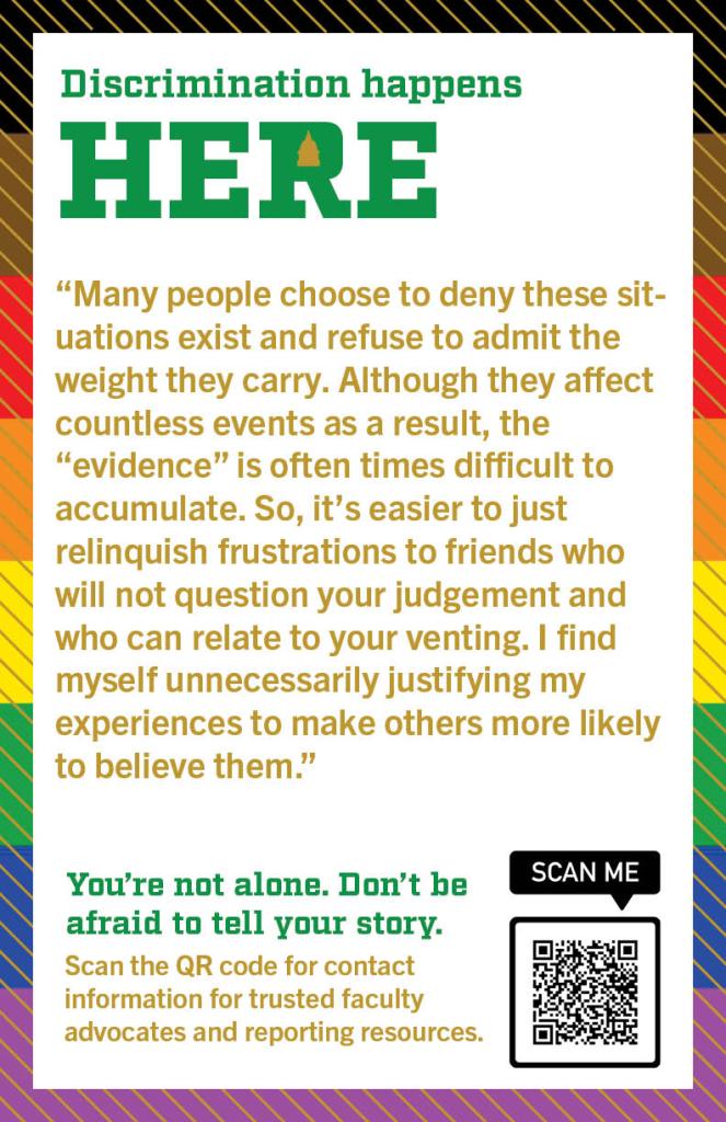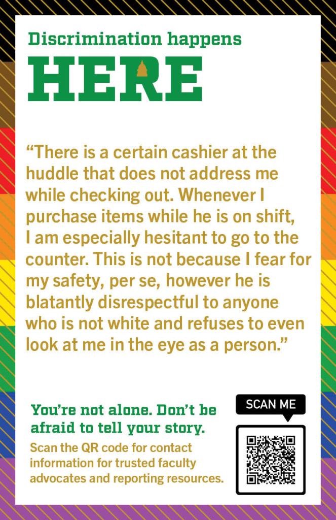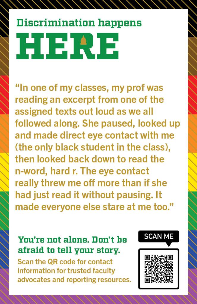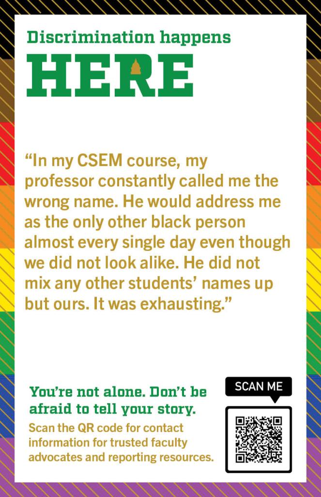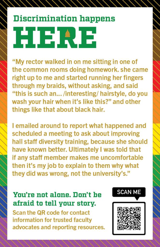 Editor’s Note: This resource list was curated for a “Data Feminism,” a course which engaged “intersectional feminist theory and activism to identify models for challenging existing power differentials in data science, with the aim of using data science methods and tools to work towards justice.” The objective for the final project was to use data feminism approaches and theories to collect data on a subject of choice. This group chose to collect stories of microaggressions that occurred on Notre Dame’s campus and create posters to bring awareness to how common instances of injustice are in our community. They collected responses through an anonymous Google form and through personal interviews. They then met with various departments and faculty at the University to learn how to advocate for students. This resource document is intended to be a next step for people who have experienced discrimination of any kind. Justice can be served, and incidents do not have to be forgotten.